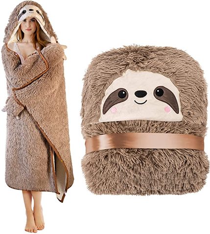 Cobertor sloth com capuz ultra macio, de flanela quente de pelúcia com capuz