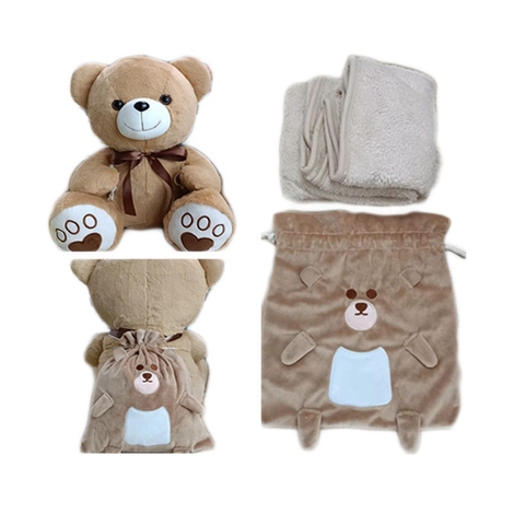 Novo design fofo urso de pelúcia do bebê, cobertor com brinquedo de pelúcia, mochila, presente infantil personalizado com urso de pelúcia e cobertor do bebê