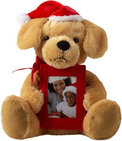 Cão de pelúcia personalizado, cão de pelúcia personalizado com imagem moldura linda de cão de natal com chapéu vermelho de suporte para foto para crianças presente de natal